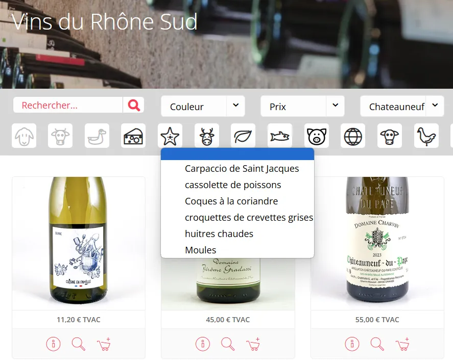 Notre boutique de vin en ligne se distingue par une fonctionnalité unique : la possibilité de trier les vins Châteauneuf du Pape selon les plats avec lesquels vous envisagez de les servir.